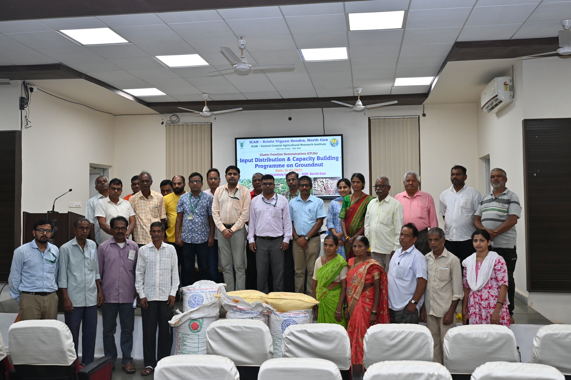 ICAR-CCARI, Goa and ICAR-KVK, North Goa, conducted an Input Distribution and Capacity Building Programme on Groundnut on 15 July 2025, at the KVK premises, primarily aimed at demonstrating improved technologies to the agricultu...