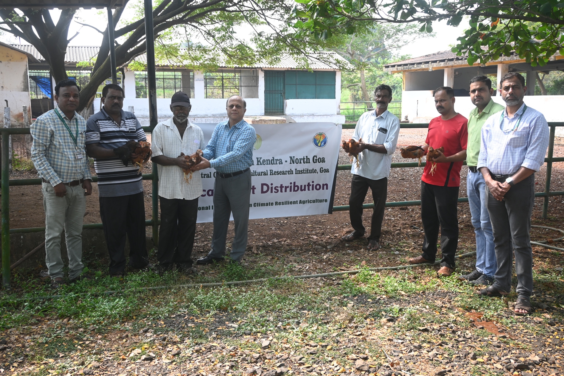 ICAR-Krishi Vigyan Kendra, North Goa, distributed Srinidhi poultry birds to farmers in Mayem village, Bicholim taluka, North Goa, under the Technology Demonstration Component of the National Innovations in Climate Resilient Agricu...