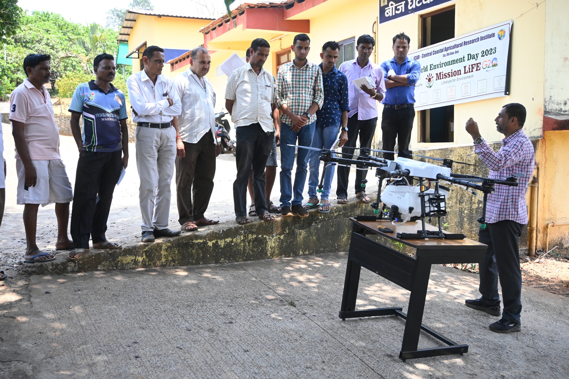 ICAR-Krishi Vigyan Kendra, North Goa and ICAR-Central Coastal Agricultural Research Institute, Goa organized a programme on awareness and demonstration of drone application in agriculture to the progressive farmers from Sonaal Vil...